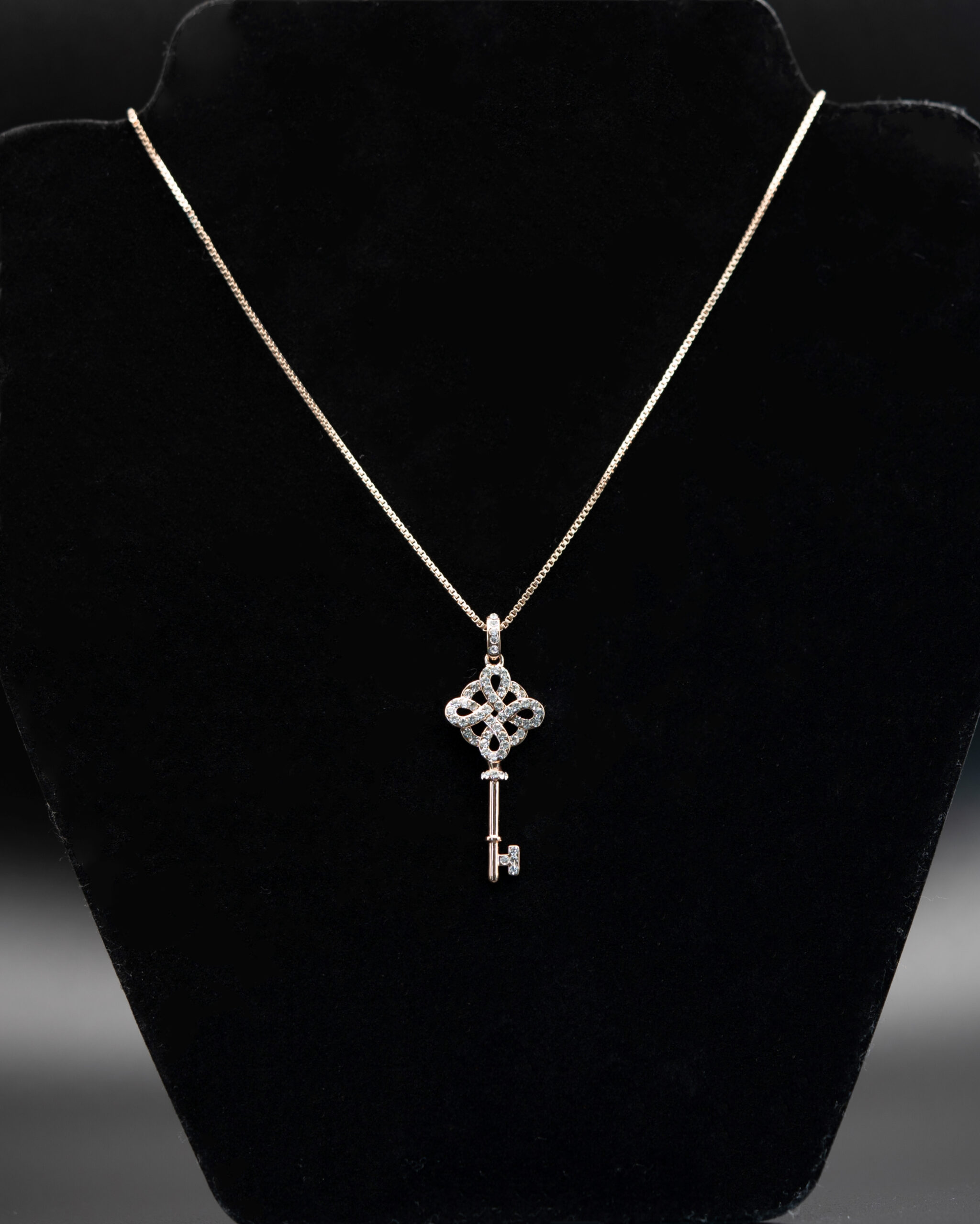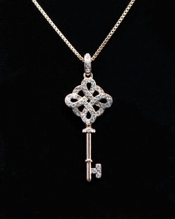 Overlayed loops handled key with inset crystal gemstones pendant necklace. |